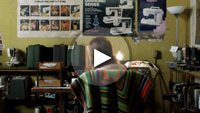 A strange visitor enters the sewing shop.